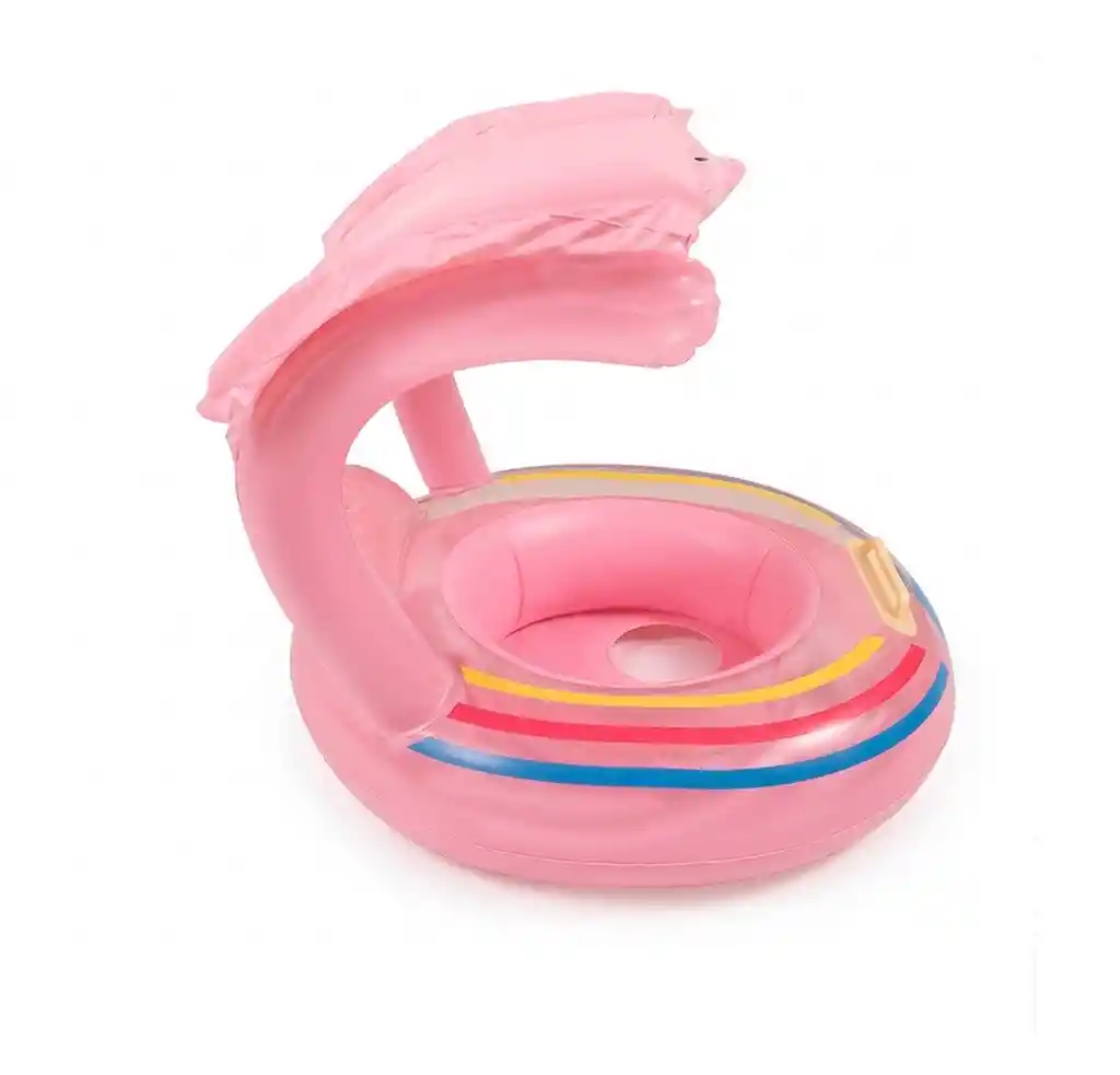 Este flotador infantil es la solución ideal para que los más pequeños disfruten del agua con total seguridad y confort durante sus primeras experiencias en la piscina. Diseñado en un llamativo color turquesa con franjas decorativas, integra un práctico techo inflable que proporciona una sombra efectiva, protegiendo la delicada piel del bebé de la exposición directa al sol. Su estructura ergonómica cuenta con un asiento tipo pañal de orificios reforzados, un respaldo inflable que garantiza una postura cómoda y un asa frontal de agarre para mayor estabilidad. Fabricado en PVC de alta resistencia y durabilidad, este flotador unisex es el accesorio perfecto para vacaciones, ofreciendo un soporte confiable mientras el bebé explora el entorno acuático de forma divertida y segura. Ficha Técnica: Género: Unisex Material: PVC de alta resistencia Dimensiones totales: 56 cm de largo x 58 cm de ancho Altura total: 70 cm (incluyendo techo) Tipo de inflado: Válvulas de seguridad independientes Edad recomendada: + 3 años Peso máximo soportado: 15 kg Características adicionales: Techo protector solar, respaldo integrado y manija de agarre frontal. Políticas de Garantía: La garantía de este producto es de 30 días a partir de la entrega y cubre exclusivamente defectos de fabricación en costuras o válvulas. Al tratarse de un artículo inflable, la garantía no será válida si el producto presenta pinchaduras, rasgaduras o daños ocasionados por mal uso, sobreinflado o contacto con superficies punzantes. Para hacer efectiva la garantía, el producto debe devolverse en su empaque original y sin señales de uso indebido. Es indispensable que el uso del flotador se realice siempre bajo la supervisión constante de un adulto responsable, ya que este producto no es un dispositivo salvavidas.