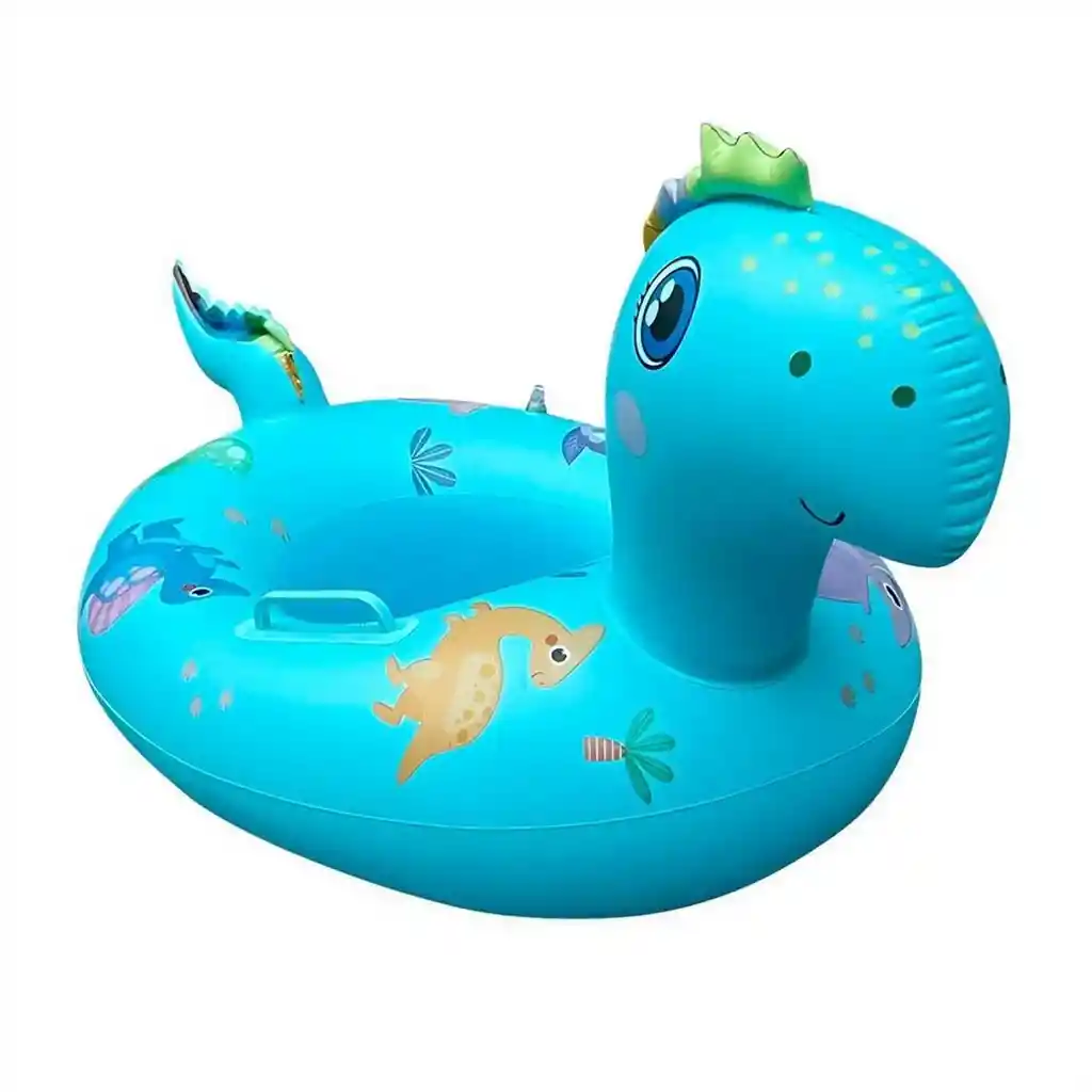 El flotador inflable infantil con diseño de dinosauiro es un accesorio acuático divertido y seguro pensado para que los niños disfruten del agua en piscina o playa con mayor estabilidad y comodidad. Está fabricado en PVC resistente y duradero, un material impermeable y flexible que soporta el uso frecuente en el agua. Su diseño incluye asiento tipo pañal con orificios para las piernas, lo que ayuda a mantener al niño en una posición estable mientras flota, además de asas laterales para un mejor agarre y control por parte de los padres. Ficha Técnica: Dimensiones: 48 cm x 42 cm Material: Vinilo PVC Edad recomendada: + 3 años Referencia: 1343-46 ** _Para defectos de fábrica o retractos: \**_Por favor revise el producto apenas lo reciba y antes de usarlo. No aplican ley de retracto o defectos de fábrica luego de usar el producto. Se manejan máximo 5 días para reportar defectos de fábrica (por ejemplo, producto funciona mal, piezas faltantes, rotas, etc). Para hacer efectiva la devolución el producto debe devolverse con el empaque original, el cual debe estar en buen estado, incluir todos los documentos y las partes completas y sin daños.