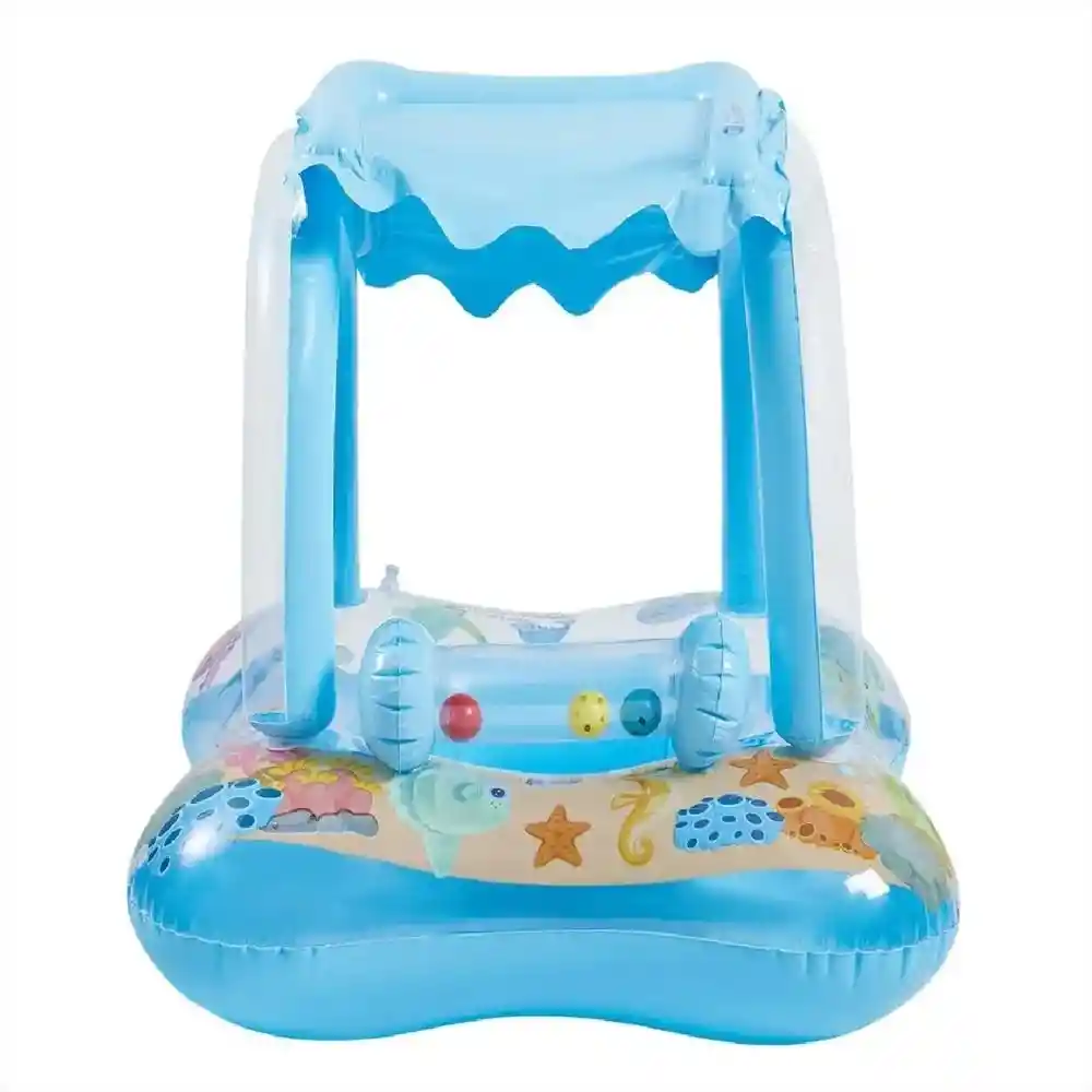 Disfruta la piscina con más seguridad y diversión: este flotador inflable para bebé/niño está fabricado en PVC, incluye techo tipo canopy para ayudar a proteger del sol y un diseño amplio y estable para que el peque vaya cómodo mientras se refresca; es liviano, fácil de inflar y transportar, ideal para vacaciones, piscina o playa, y siempre debe usarse en agua poco profunda bajo supervisión de un adulto. Ficha Técnica: Dimensiones: 60 cm x 60 cm x 58 cm Material: Vinilo PVC Edad recomendada: + 3 años Referencia: FD-003 ** _Para defectos de fábrica o retractos: \**_Por favor revise el producto apenas lo reciba y antes de usarlo. No aplican ley de retracto o defectos de fábrica luego de usar el producto. Se manejan máximo 5 días para reportar defectos de fábrica (por ejemplo, producto funciona mal, piezas faltantes, rotas, etc). Para hacer efectiva la devolución el producto debe devolverse con el empaque original, el cual debe estar en buen estado, incluir todos los documentos y las partes completas y sin daños.