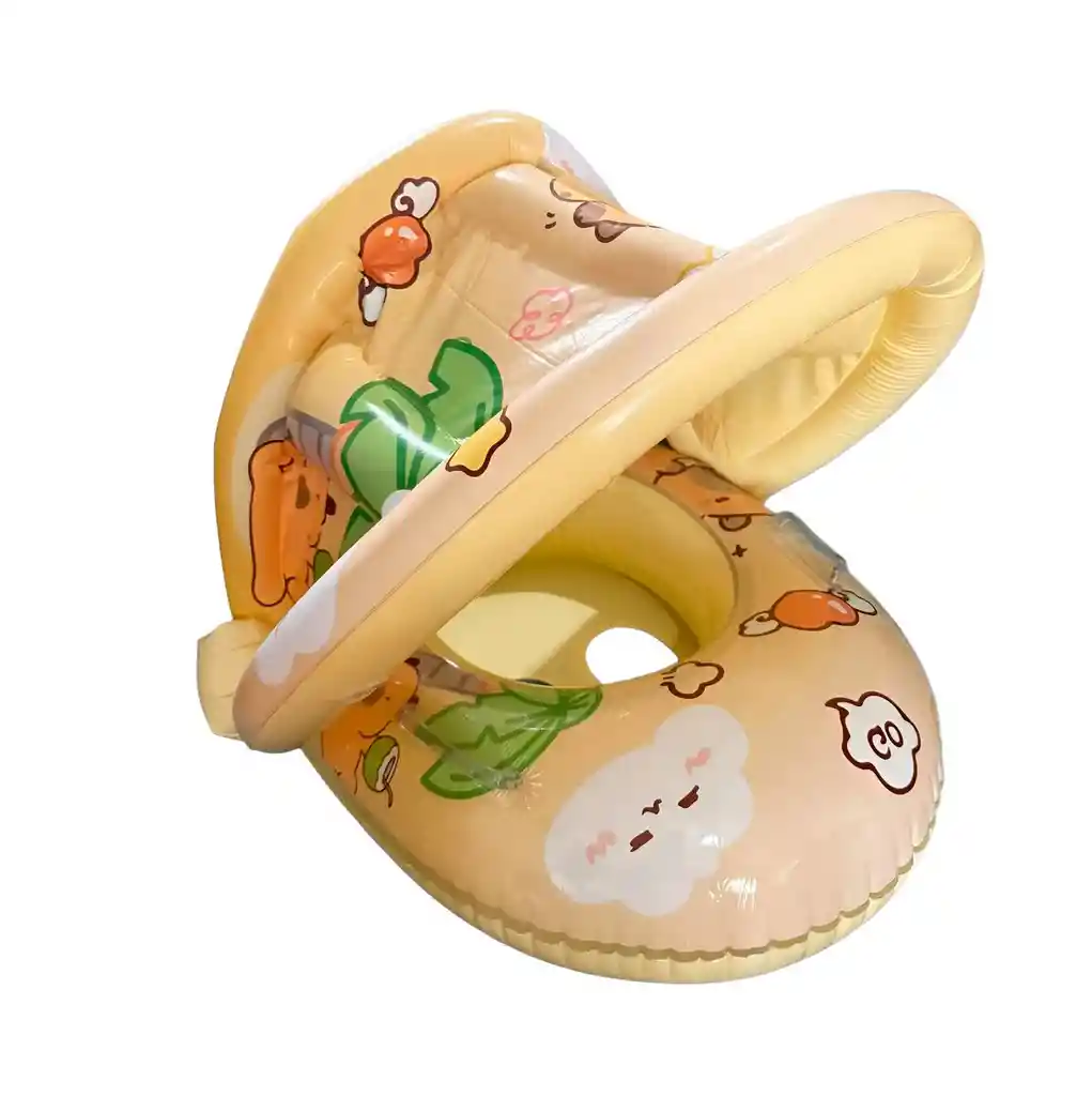 Brinde a su bebé una experiencia acuática segura y divertida con este encantador flotador inflable, destacando por su tierno diseño de carpincho (capybara) en un suave tono amarillo. Este flotador está diseñado pensando en la máxima protección, incluyendo un práctico techo inflable integrado que actúa como sombrilla para resguardar la delicada piel de su pequeño de los rayos solares directos. Fabricado con PVC de alta resistencia y acabados suaves, cuenta con un asiento tipo pañal con orificios reforzados para las piernas que garantizan estabilidad y evitan deslizamientos, permitiendo que el bebé flote cómodamente mientras explora el agua. Es el accesorio ideal para vacaciones en la piscina o días de playa, combinando un estilo adorable con la tranquilidad que los padres necesitan. Ficha Técnica: Modelo: PATO-168 Dimensiones: 70 cm x 60 cm x 55 cm Tipo de producto: Flotador inflable tipo barca para bebé Diseño: Temático de Carpincho (Capybara) con ilustraciones animadas Material: PVC ecológico de alta durabilidad y no tóxico Techo protector: Inflable, fijo de gran cobertura para protección UV Asiento: Orificios internos reforzados para mayor soporte y seguridad Edad recomendada: 6 a 36 meses (bajo supervisión constante de un adulto) Dimensiones inflado: Aproximadamente 65 cm de largo x 60 cm de ancho Válvulas: Sistema de seguridad antifugas Características adicionales: Manijas de agarre laterales y respaldo ergonómico inflable Políticas de Garantía Este producto cuenta con una garantía limitada por defectos de fabricación detectables en el primer inflado, cubriendo exclusivamente fallas en las costuras térmicas o válvulas defectuosas de origen. La garantía no aplica por pinchazos, rasgaduras o cortes causados por objetos afilados, daños por sobreinflado o el desgaste natural por el uso en agua clorada o salada. Se recomienda realizar una prueba de inflado inicial en seco para verificar la integridad del producto antes de su primer uso en el agua; para cualquier reclamación, es indispensable presentar el empaque original en buen estado dentro de los plazos legales establecidos.