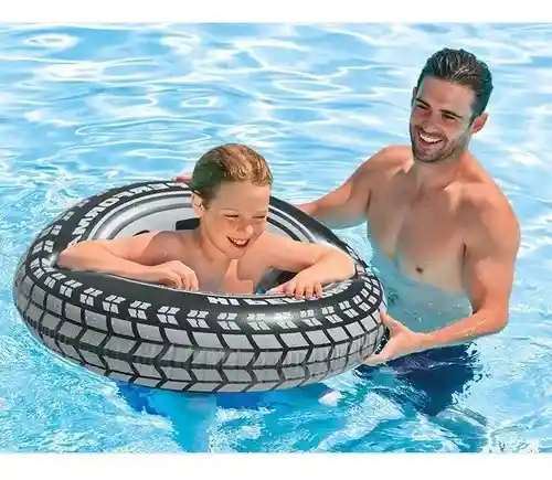 Flotador Inflable Piscina Mar Llanta Carro Neumático 70 Cm flotador tipo llanta Inflable flotante en forma de llanta color negro. - Rueda inflable fabricada en vinilo con grosor de calibre 10. - Resistente al cloro y al agua salada.
