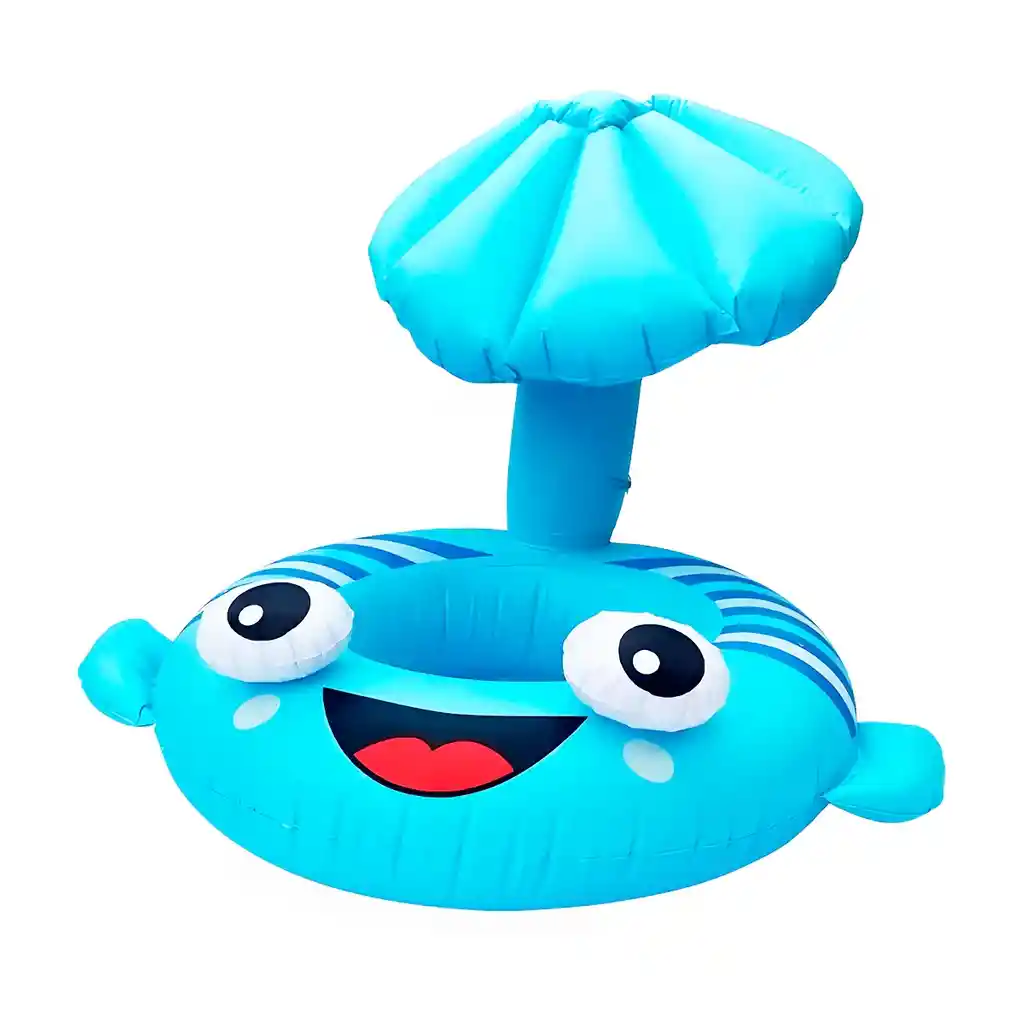 Este flotador inflable para niños con sombrilla/parasol está diseñado para que los peques disfruten la piscina con más comodidad y protección del sol, ya que incorpora una cubierta superior que ayuda a bloquear los rayos UV; está fabricado en PVC impermeable suave al tacto, cuenta con asiento circular para reducir el riesgo de deslizamiento, y un diseño anti-rotación/anti-vuelco para mayor estabilidad mientras juegan y desarrollan equilibrio y confianza en el agua; además, se infla y desinfla rápido para transportarlo y guardarlo fácilmente. Ficha Técnica: Dimensiones: 74 cm x 62 cm x 59 cm Material: Vinilo PVC Edad recomendada: + 3 años Referencia: 1343-47 ** _Para defectos de fábrica o retractos: \**_Por favor revise el producto apenas lo reciba y antes de usarlo. No aplican ley de retracto o defectos de fábrica luego de usar el producto. Se manejan máximo 5 días para reportar defectos de fábrica (por ejemplo, producto funciona mal, piezas faltantes, rotas, etc). Para hacer efectiva la devolución el producto debe devolverse con el empaque original, el cual debe estar en buen estado, incluir todos los documentos y las partes completas y sin daños.
