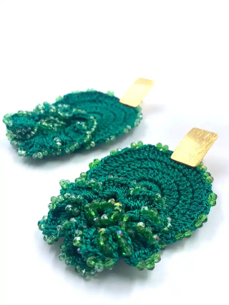 Estos aretes son el resultado de la creatividad de nuestro equipo que siempre deja su alma y cuerpo en cada creación que hacen con el fin de entregar productos de la mejor calidad. Son 100% hechos a mano en nuestro taller. Cada una de nuestras piezas están inspiradas en la Mujer: “ Gracia y elegancia que atrae la atención de muchos con un estilo único que marca tendencia. “ Recomendaciones para el cuidado de cada pieza: • mantenerlos guardados en su cajita protectora • Evitar el contacto con agua, cremas u otros líquidos.