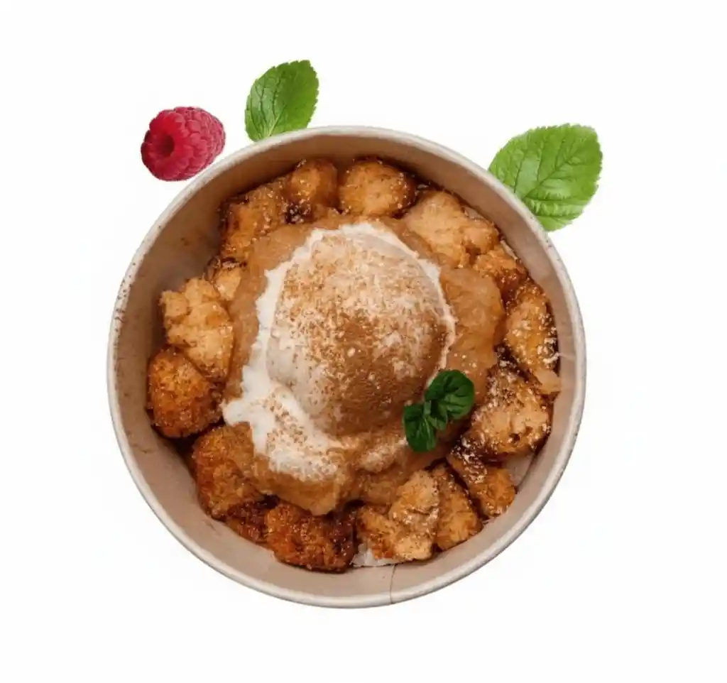 Masa Fluffy (Postre Austriaco) Compota de Manzana, Canela, Helado