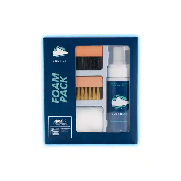 El kit de limpieza para tenis FOAM PACK es considerado como un laboratorio personal para el cuidado de los calzados, debido a que es eficiente y compacto, capaz de remover la suciedad que aparece inevitablemente con el uso del calzado. Además, es natural y 100% biodegradable. ¿Qué contiene? - 150 ml de solución limpiadora. - Escobilla Premium para materiales delicados. - Escobilla Basic para lona, cuero liso y materiales sintéticos - Toalla de microfibra. Características: - No contiene químicos dañinos. - Ingredientes naturales. - 100% biodegradable. - Seguro para usar en cualquier material, incluyendo gamuza. Modo de uso: 1. Preparación: Escobille en seco de adentro hacia afuera para eliminar la suciedad superficial. 2. Humedecer: Humedezca la escobilla en agua. 3. Aplicar Limpiador: Coloque el limpiador de Clean Lab en la escobilla. 4. Limpiar: Accione la escobilla sobre el calzado. 5. Secar: Limpie la suciedad con la toalla de microfibra. 6. Dejar secar: Permite que el calzado se seque completamente.
