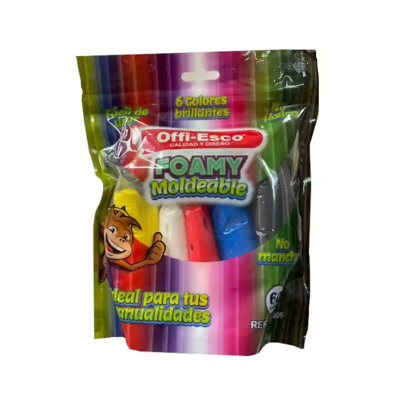 🍥 Foamy moldeable x 6 colores marca Offi Esco Ideal para manualidades. No tóxica. No mancha. No se pega