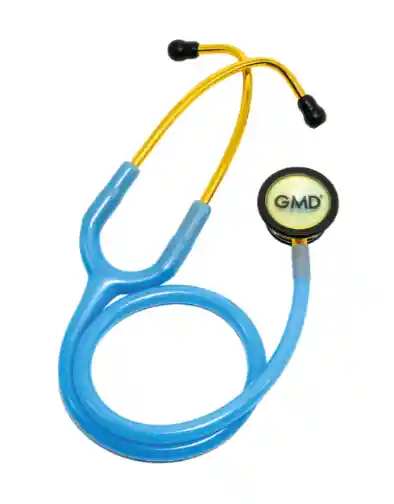 Estetoscopio de doble campana con piezas auriculares de aluminio y una campana de acero inoxidable, diseñado para estudiantes y profesionales de la salud, que facilita la escucha clara de ruidos corporales como los del corazón y los pulmones.
