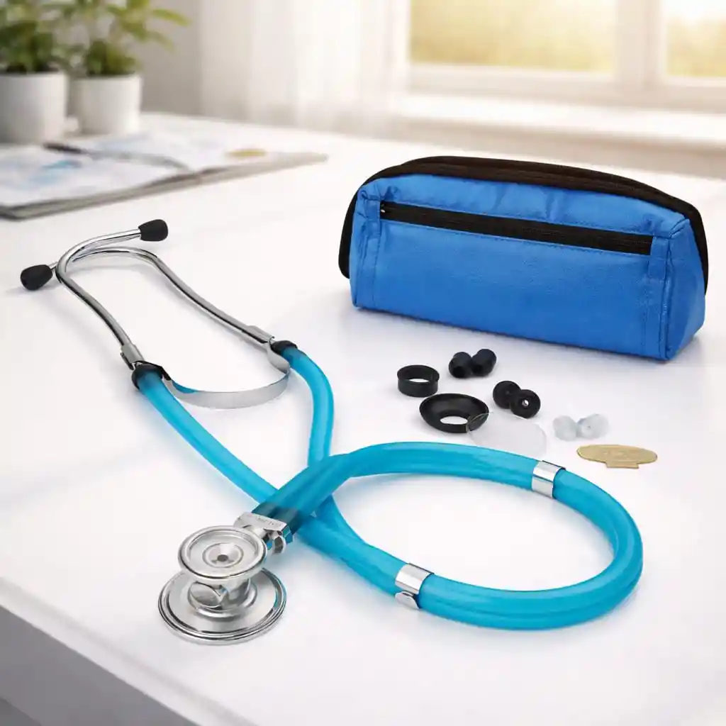 El Fonendoscopio Tenso Rappaport Doble Servicio está diseñado para ofrecer una excelente transmisión del sonido gracias a su sistema de doble manguera, permitiendo una auscultación clara y precisa. Cuenta con doble campana para adulto y pediátrico, ideal para evaluar diferentes tipos de pacientes. Está fabricado con materiales resistentes y manguera flexible, proporcionando durabilidad y comodidad durante su uso profesional. Incluye estuche de transporte y accesorios intercambiables, lo que lo convierte en una herramienta práctica para médicos, enfermeros, estudiantes de medicina y profesionales de la salud. Características • Sistema de doble manguera para mejor transmisión del sonido • Doble campana: adulto y pediátrico • Manguera flexible y resistente • Incluye accesorios intercambiables • Incluye estuche de transporte • Diseño profesional y duradero Color: Azul claro Contenido del paquete • 1 Fonendoscopio Rappaport • Accesorios de repuesto • 1 Estuche de transporte