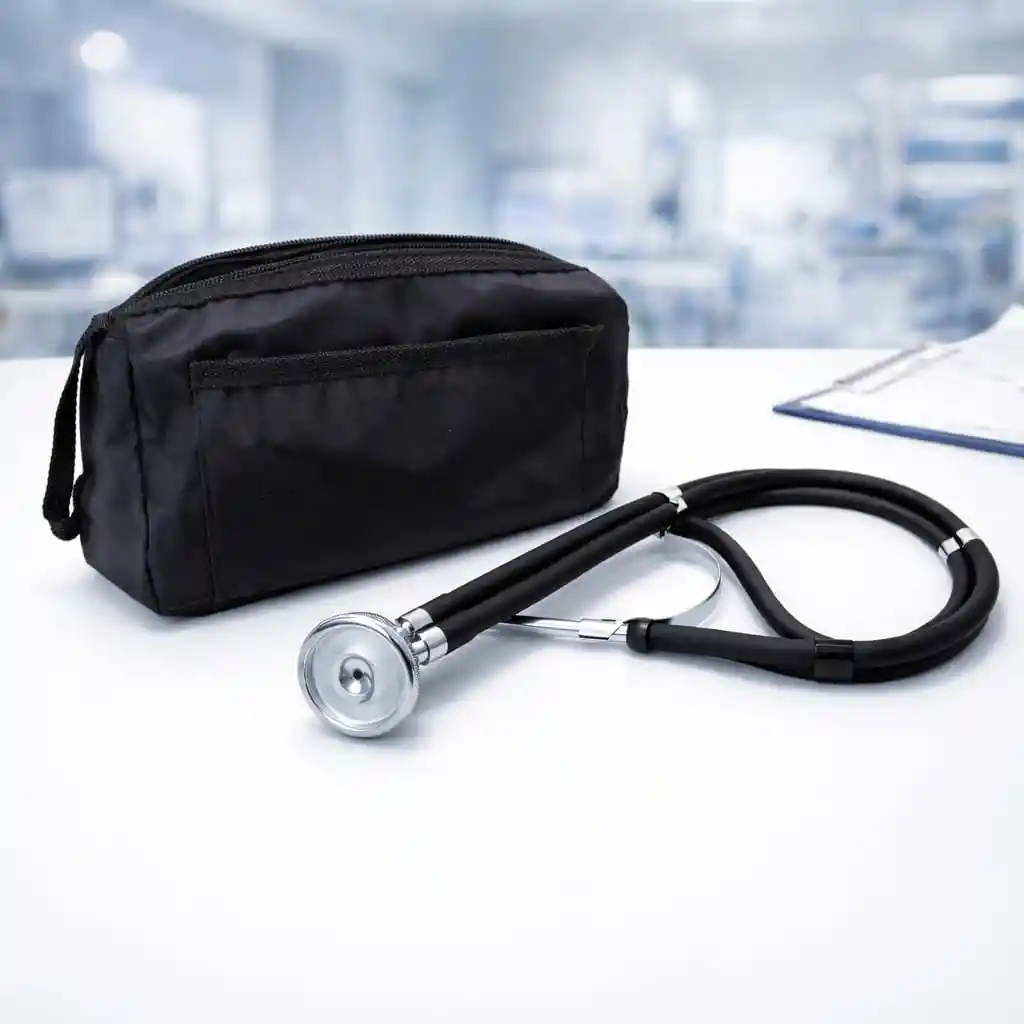 El Fonendoscopio Tenso Rappaport de doble servicio ofrece una excelente transmisión del sonido gracias a su sistema de doble manguera, permitiendo una auscultación clara y precisa. Fabricado en aleación de zinc resistente, cuenta con doble campana para adulto y pediátrico, ideal para médicos, enfermeros y estudiantes del área de la salud. Color: Negro Características • Sistema de doble manguera para mejor acústica • Doble campana: adulto y pediátrico • Fabricado en aleación de zinc • Manguera flexible en PVC • Incluye 3 anillos para la pieza de pecho • Incluye marquilla y 2 pares de olivas • Incluye llave para ajuste del manómetro Cuidado Limpiar con alcohol isopropílico al 70%. No sumergir en líquidos ni exponer a temperaturas extremas.