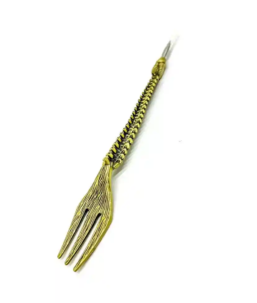 El tenedor facilita distribuir tu mezcla de manera uniforme en el bowl, evitando que se pegue en las manos. Además, su punzón inferior te permite perforar el papel aluminio fácilmente. Medidas: Largo: 17 Cm Material: Acero Este producto puede ser utilizado para productos que contienen nicotina o tabaco. Su uso está destinado exclusivamente a mayores de edad. La comercialización de este tipo de productos está regulada por la Ley 2354 de 2024.