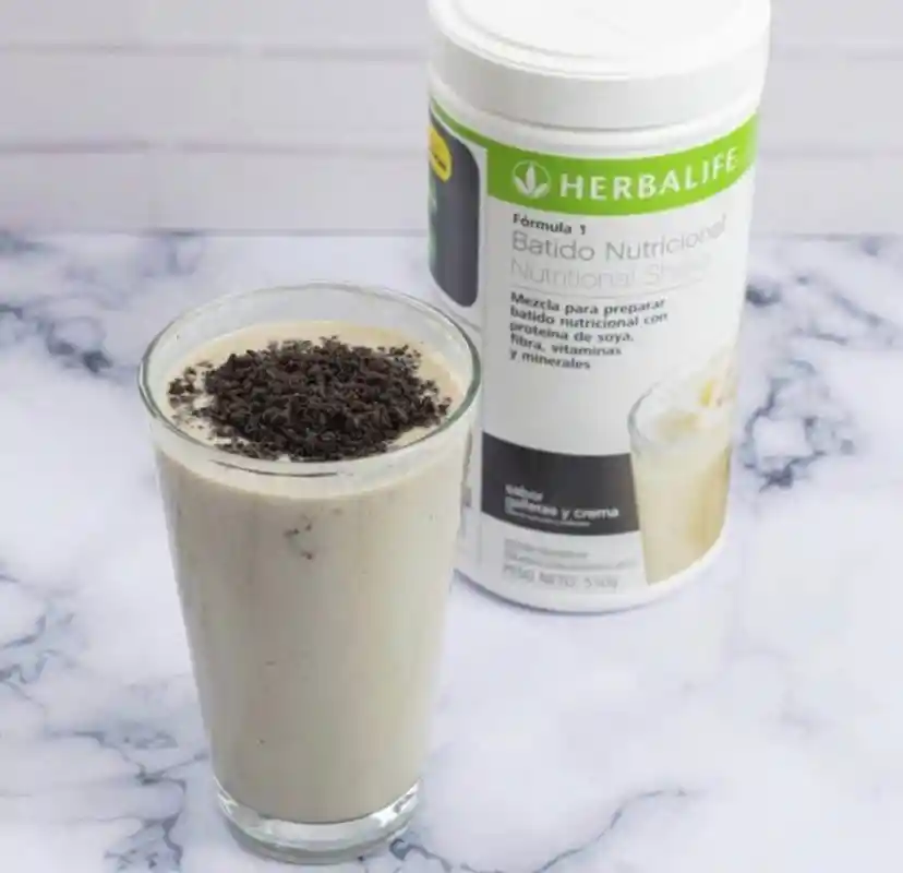 Complementa tu nutrición con el Batido Nutricional Fórmula 1 de Herbalife Nutrition con proteína de soya, fibra, vitaminas y minerales para ayudar a nutrir tu cuerpo y a sentirte satisfecho y con energía. Beneficios clave Alimento que ayuda a nutrir su cuerpo. Contiene vitaminas, minerales, proteína de soya y fibra. Incluye las vitaminas antioxidantes C y E. Provee 10gr de proteína por porción* Este delicioso Batido Nutricional Fórmula de Herbalife Nutrition contiene proteína de soya (10 gramos por porción*), fibra, vitaminas y minerales. Una porción de Batido Nutricional Fórmula 1 en agua tiene sólo 90 Calorías y 1 gramo de grasa. Cuando se mezcla con un vaso (240ml) de leche descremada, aporta 170 Calorías. Datos Básicos Presentación de 550g