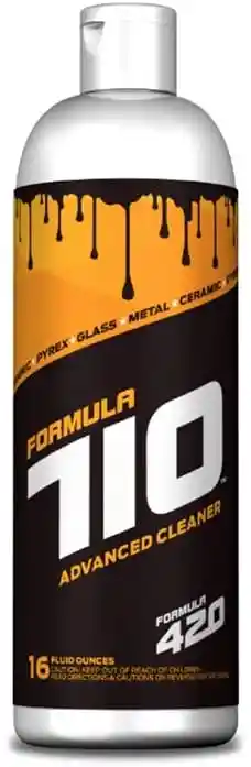 Formula 710 es un potente limpiador diseñado específicamente para eliminar residuos difíciles en accesorios de vidrio, metal o cerámica. Su fórmula actúa rápidamente sin necesidad de frotar, disolviendo resinas y acumulaciones con solo agitar y enjuagar. Ideal para mantener tus piezas limpias y como nuevas en pocos minutos.