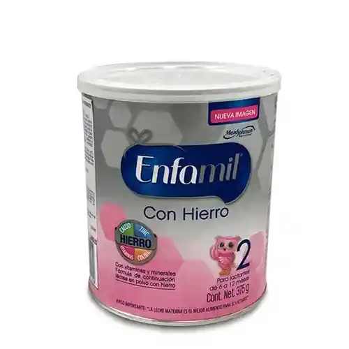 Descripción del producto: La Fórmula Láctea Enfamil 2 está diseñada para cubrir las necesidades nutricionales de los lactantes desde el nacimiento hasta los 6 meses de edad. Características del Producto: Tamaño: 12cm x 10cm x 6cm Peso: 375 g Modo de fabricación: Industrial Origen: Nacional Modo de uso: Preparar siguiendo las instrucciones del envase. No administrar a bebés prematuros o con problemas de inmunidad sin supervisión médica. Mantener una higiene adecuada durante la preparación. Registro Sanitario Invima: RSA-0014325-2021 Componentes: DHA ARA Zinc Hierro Colina Vitaminas Minerales Prebióticos (galactooligosacáridos y polidextrosa) ESTE PRODUCTO NO ES LECHE. Su composición y calidad nutricional difieren de las propias de la leche. ALIMENTOS DE FÓRMULA PARA LACTANTES Y COMPLEMENTARIOS DE LA LECHE MATERNA. La Leche Materna es el mejor alimento para el niño. La manera precisa e higiénica de preparar y utilizar el alimento es fundamental. Si no se siguen estrictamente las indicaciones de preparación e higiene, este o cualquier otro alimento puede ser perjudicial para la salud del niño. Uso higiénico de utensilios: Suministre este producto utilizando taza o cuchara. Asegúrese de lavar adecuadamente todos los utensilios de preparación y suministro. ALIMENTOS COMPLEMENTARIOS DE LA LECHE MATERNA: Este producto sólo es complementario de la leche materna después de los primeros cuatro (4) meses de edad del niño.