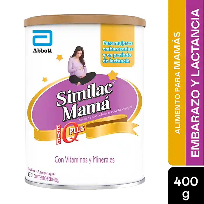 SIMILAC MAMA TARRO X 400G Similac® Mamá es un alimento a base de leche, bajo en grasa, que contiene vitaminas y minerales esenciales para apoyar las necesidades nutricionales de las mujeres embarazadas y en periodo de lactancia. Preparación: 3 medidas + 150 ml de agua. Componente activo: RSIA02I51012