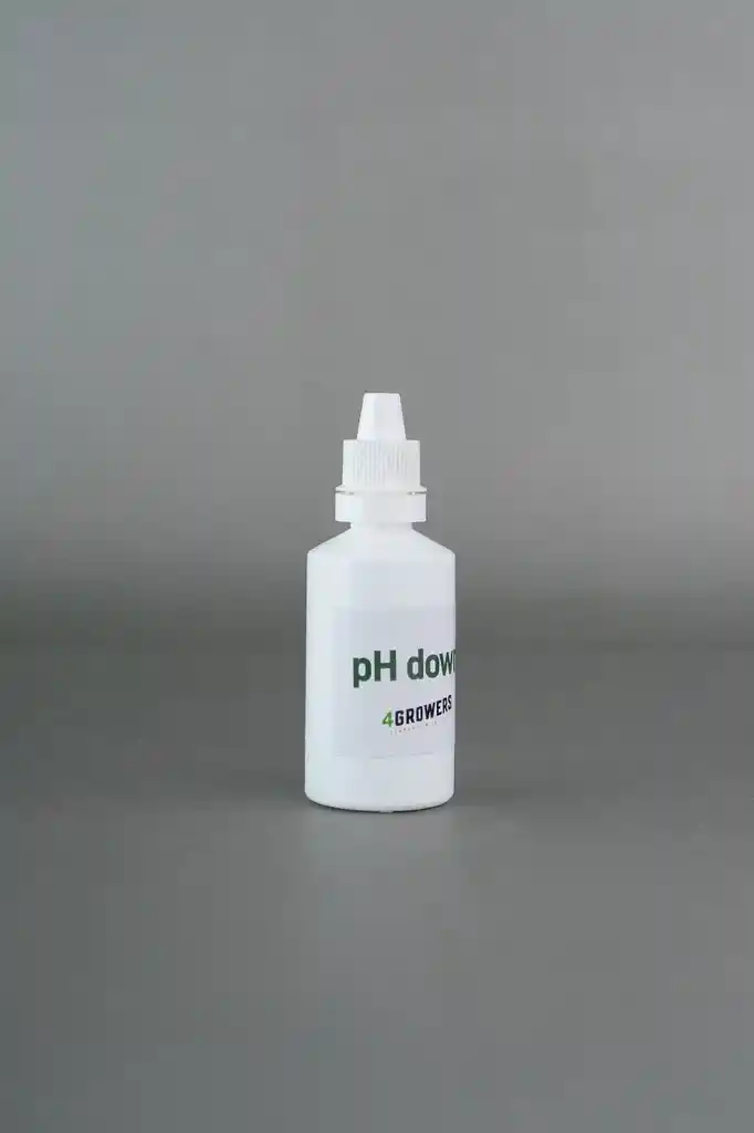 pH Down: Esta formulación ácida utiliza ácido fosfórico para reducir el pH de una solución para plantas de Cannabis al nivel adecuado.