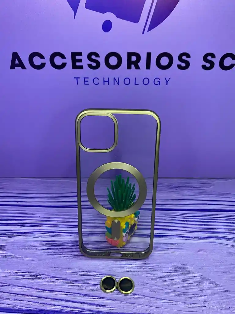 Forro Iphone 13 color dorado con protectores de cámara incluido.
