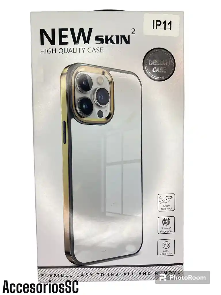 Funda antigolpe transparente color dorado.