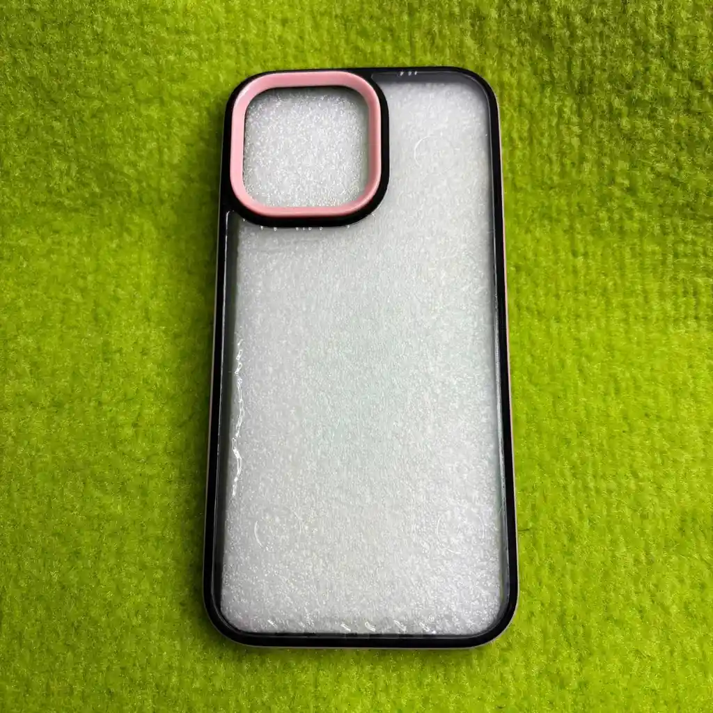 Forro Iphone 14 Pro Max / Borde Rosa Con Negro / Proteccion Y Estilo