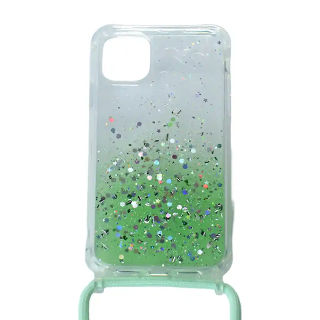 Forro Silicone Case Brillo Con Cordon iPhone 13 Pro Max Verde