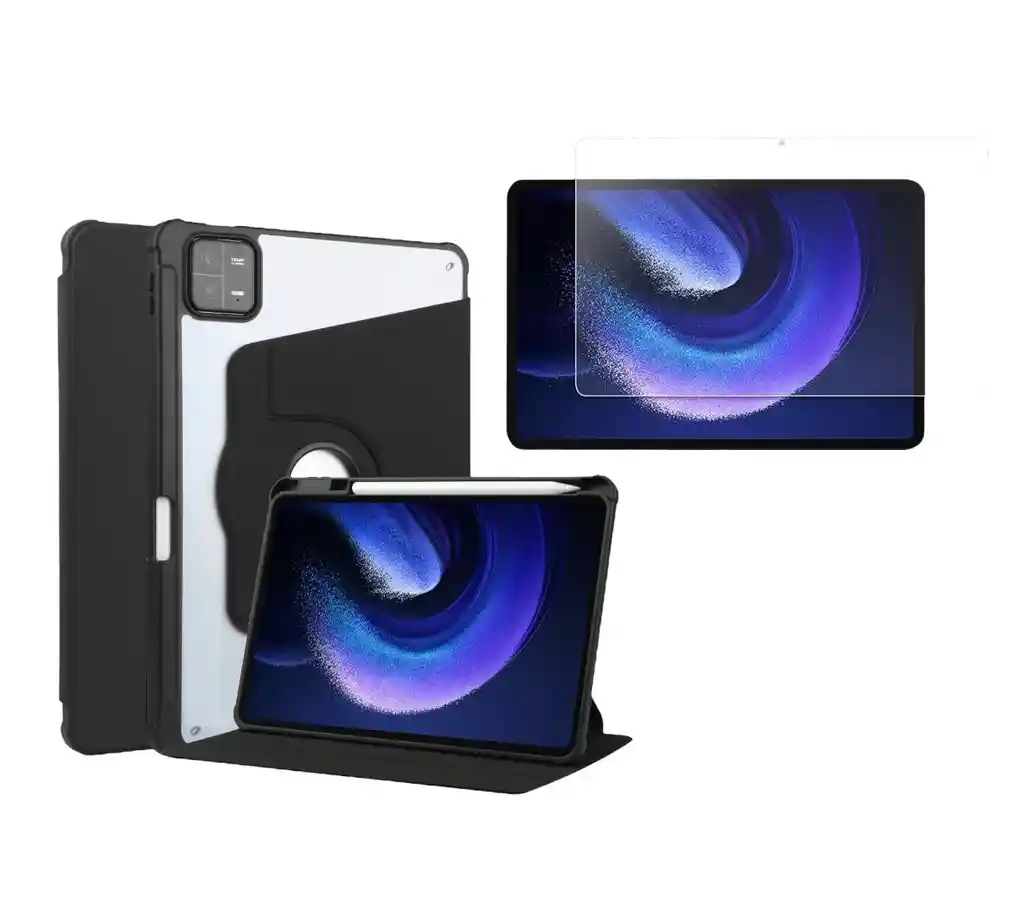 Estuche Smart Case 360 con Espacio para Lápiz + Vidrio - Protege la Parte de adelante y trasera de la Tablet daños del uso cotidiano. - Diseño Moderno Ultra Delgado, liviano y fácil de usar. - Diseño ligero elaborado en cuero sintético y materiales de primera calidad. - Espacios precisos para botones y mantienen todas las funciones sin interrupciones y de acceso rápido sin afectar su manipulación.