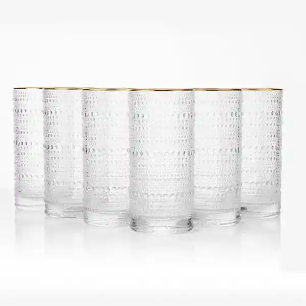 Set Contiene 6 Unidades. Este Set de Vasos Está Inspirado en Los Tesoros Encontrados en Los Mercadillos Parisinos. Con Ellos le Darás un Toque Diferencial a tu Mesa y un Toque Vintage Que Nunca Pasa Desapercibido. Son Perfectos Para Cócteles Bebidas Refrescantes o Simplemente Para el Uso Diario Mientras Combinas Diseño Resistencia y Funcionalidad. Material: Fabricado en Vidrio Sílice-Cal-Soda Reforzado Con Óxido de Magnesio y Alúmina Una Combinación de Materiales de Primera Calidad Que Ofrecen Mayor Durabilidad y Resistencia a Cada Vaso Además de Ser Aptos Para Lavavajillas Para un Cuidado Práctico y Sin Complicaciones. No es Apto Para Microondas Diseño Inconfundible: Su Icónico Relieve Tipo Vidrio Burbuja Sumado a un Color Clásico Aportará Textura Color y Una Elegancia Que Destaca Por sí Sola. Versatilidad en su Uso: Este Set de 6 Vasos Altos es Perfecto Para Mojitos Mezclas Creativas y Bebidas Sin Alcohol Ofreciendo Una Experiencia Elegante Tanto en Eventos Especiales Como en el Uso Diario al Convertirse en un Esencial Dentro de la Cristalería de la Casa.