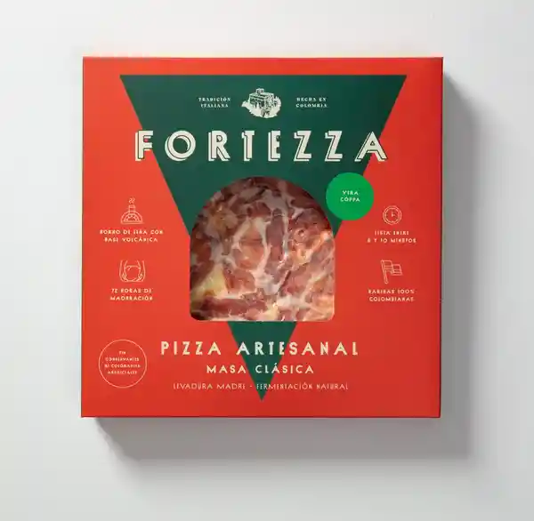 La Verdadera Pizza Italiana Congelada de Altísima Calidad Siempre en tu Casa y Lista en 8 Minutos Base de Tomate Italiano Dulce y Balanceado Solo Queso Mozzarella Fresco ''Fior di Latte'' Como Requiere la Tradición Jamón Curado Coppa Típico de Italia Hecho Con la Bondiola de Cerdo. La ''Masa Clásica'' Con Harina de Trigo Fuerte Con Alto Contenido Protéico Aceite de Oliva y Enriquecida Con Una Especial Mezcla de Harinas Integrales Para Unos Aromas y Consistencia Única. Cocinada en Horno de Leña Con 48 Horas de Maduración y Masa Madre Sin Adición de Conservantes ni Colorantes Artificiales.