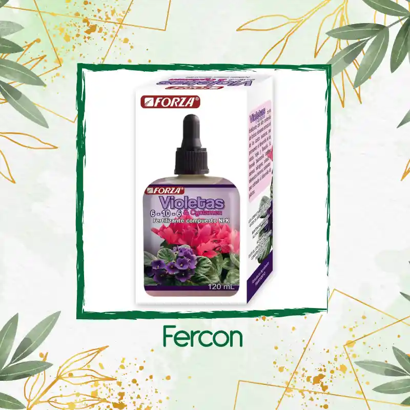 Bienvenido a Garden Green, Tú Vivero Virtual • Características: El fertilizante Forza Violetas es un fertilizante con alto contenido de fósforo, elemento que promueve el desarrollo de las raíces, hojas y floración. Su fórmula balanceada contiene además nitrógeno, potasio y elementos menores, que estimulan el desarrollo de plantas. • Recomendaciones: Se debe aplicar el riego directamente al suelo teniendo cuidado en no mojar las hojas. Utilice forza fertilizante violetas cada 15 días en 10 gotas por cada litro de agua y riegue. Evite excederse en el riego; las violetas y los cyclámenes son plantas muy sensibles a la humedad.
