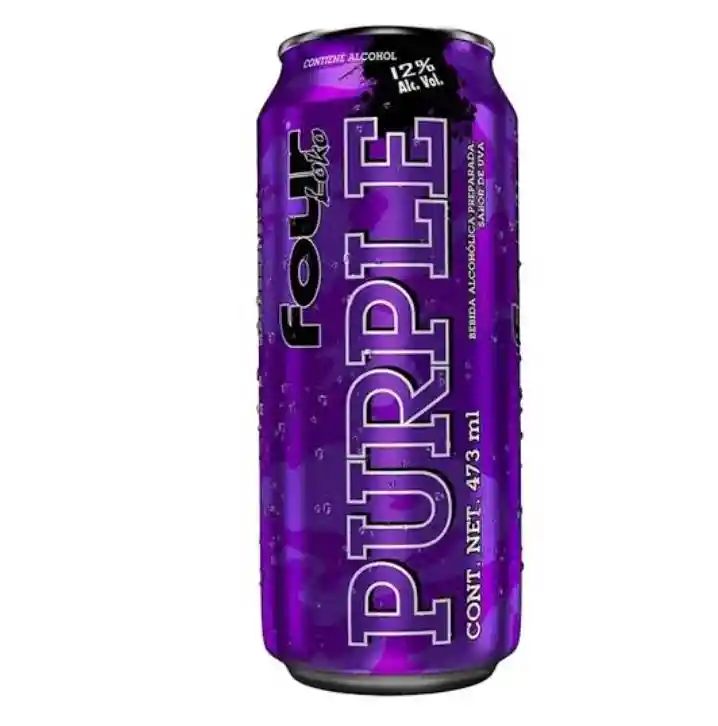 Four Loko Purple es una bebida alcohólica saborizada, lista para tomar, que se caracteriza por su intenso sabor a uva agridulce y su color morado vibrante. Con una graduación alcohólica del 12% en una lata de 355 ml, ofrece una experiencia dulce y refrescante, ideal para fiestas y reuniones