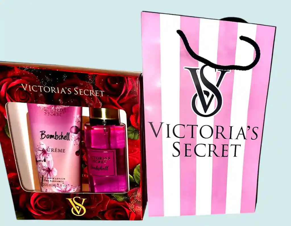 Contiene 1 Splash de Victoria’s Secret de 250, ML 1 crema de manos 200ml Caja decorativa y bolsa de su respectiva marca Aroma de alta calidad Fragancia alta calidad Perfume de alta calidad