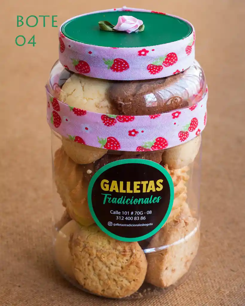 Cada frasco contiene 19 galletas de diferentes sabores como milanesa, mantequilla y milanesa coco.