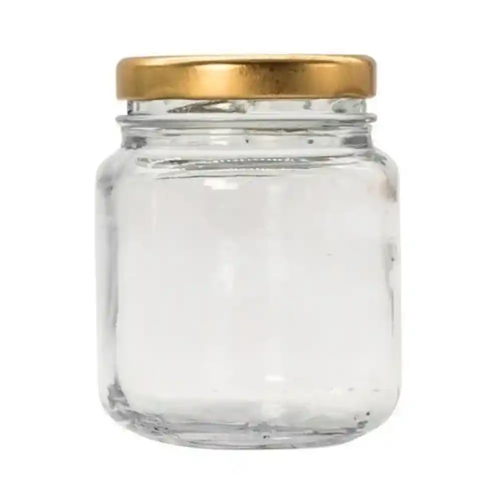 Frasco de vidrio con tapa, capacidad 130 ml . Terminado Media Rosca Peso: 90gr Alto: 6.8 cm Diámetro :5.8 cm