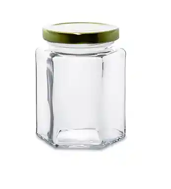 FRASCO VIDRIO HEXAGONAL 110ML TAPA DORADA PRECIO UNITARIO