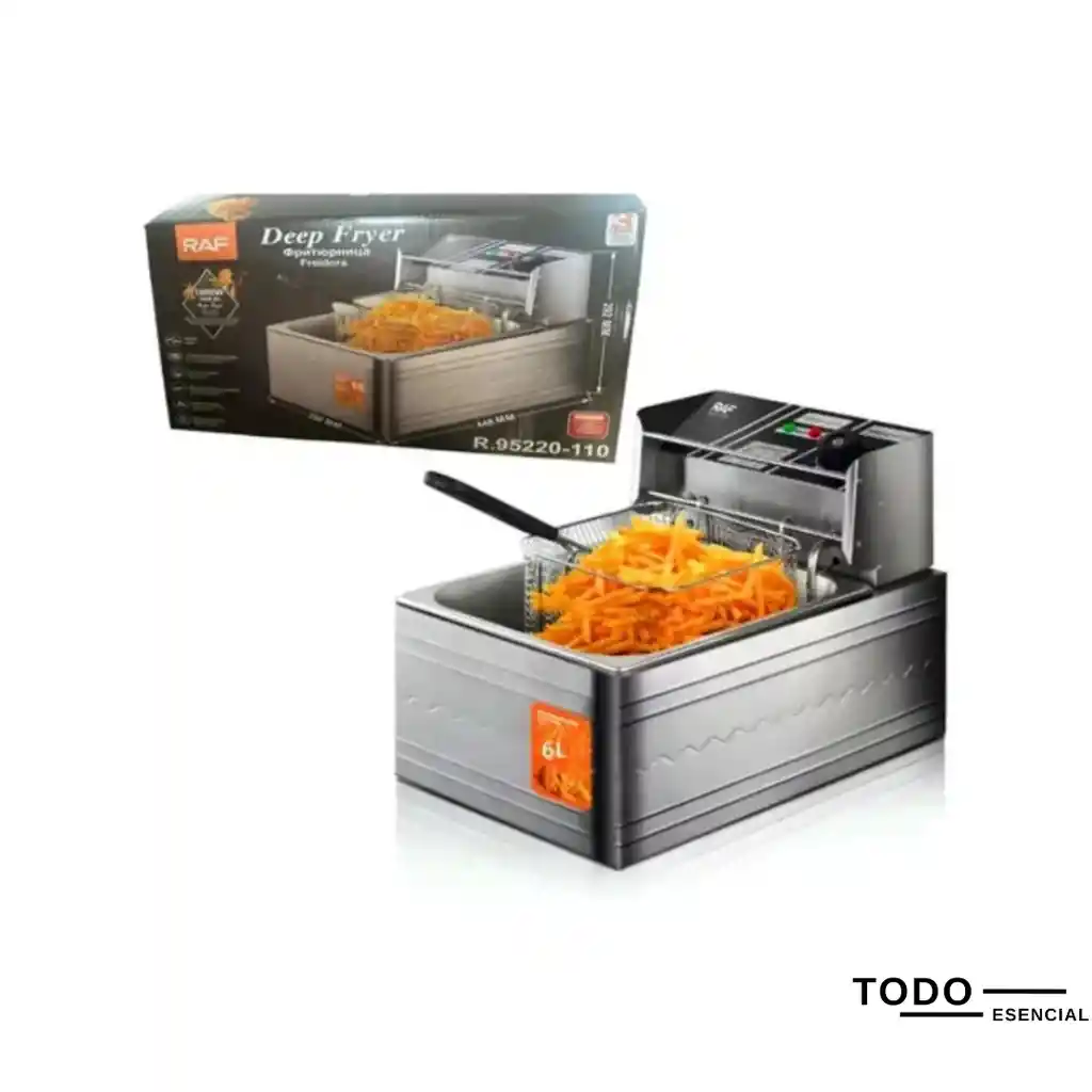 🍟 Logra frituras perfectas, crujientes y uniformes con una herramienta de grado industrial diseñada para el alto rendimiento. Esta freidora eléctrica combina una gran capacidad con una potencia excepcional para garantizar resultados profesionales en cada ciclo de cocción. 🔹 Características Destacadas: ✅ Capacidad Industrial de 6 Litros: Amplia cuba de acero inoxidable que permite preparar grandes cantidades de alimentos de forma simultánea, optimizando el tiempo en la cocina. ✅ Potencia de 1600W: Resistencia de alto desempeño que calienta el aceite rápidamente y mantiene una temperatura estable para un sellado perfecto. ✅ Construcción en Acero Inoxidable: Cuerpo robusto y duradero que resiste el uso intensivo y facilita una limpieza profunda e higiénica. ✅ Control de Temperatura Ajustable: Perilla de precisión que permite regular el calor según el tipo de alimento, desde papas fritas hasta carnes o rebozados. ✅ Canastilla Reforzada con Mango Frío: Incluye una cesta de malla fina con mango ergonómico que permanece frío al tacto, permitiendo un escurrido seguro y cómodo. ✅ Indicadores Luminosos de Seguridad: Luces integradas que notifican cuando el equipo está encendido y cuando el aceite ha alcanzado la temperatura seleccionada. ✅ Diseño Compacto y Funcional: Con dimensiones de 448 mm de largo por 282 mm de alto, se adapta fácilmente a diferentes espacios de trabajo sin comprometer su capacidad. 🔄 La inversión ideal para emprendimientos gastronómicos o familias numerosas que buscan calidad y rapidez. ¡Lleva la eficiencia de una cocina profesional a tu hogar o negocio con la garantía de durabilidad de RAF! 🍤🔥