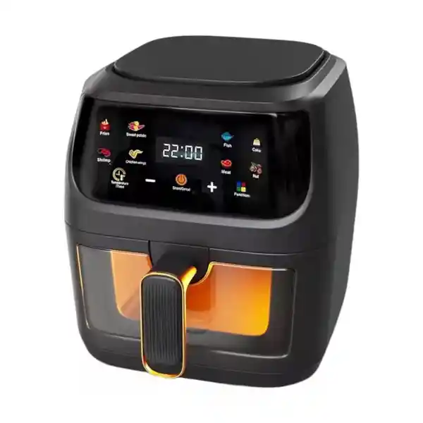 Freidora de aire de gran capacidad ideal para preparar comidas saludables y deliciosas para toda la familia. Utiliza tecnología de circulación de aire caliente que permite cocinar los alimentos de manera uniforme, logrando un acabado crujiente con hasta 99.5 % menos aceite. Cuenta con panel digital intuitivo que facilita el control del tiempo y la temperatura, adaptándose a diferentes tipos de recetas. Su cesta antiadherente evita que los alimentos se peguen y permite una limpieza rápida y sencilla. Además, sus partes removibles son aptas para lavavajillas, brindando mayor comodidad después de cada uso. Gracias a su cocción rápida, no es necesario precalentar, lo que ahorra tiempo y energía. Es perfecta para preparar papas fritas, pollo, carnes, pescados, verduras y más, conservando el sabor y la textura sin exceso de grasa.Características Capacidad: 12 litros (ideal para familias grandes). Cocina con hasta 99.5% menos aceite. Panel digital táctil con múltiples funciones. Temperatura ajustable. Cocción rápida, no necesita precalentamiento. Cesta antiadherente. Partes removibles, aptas para lavavajillas. Ventana frontal para ver la cocción.