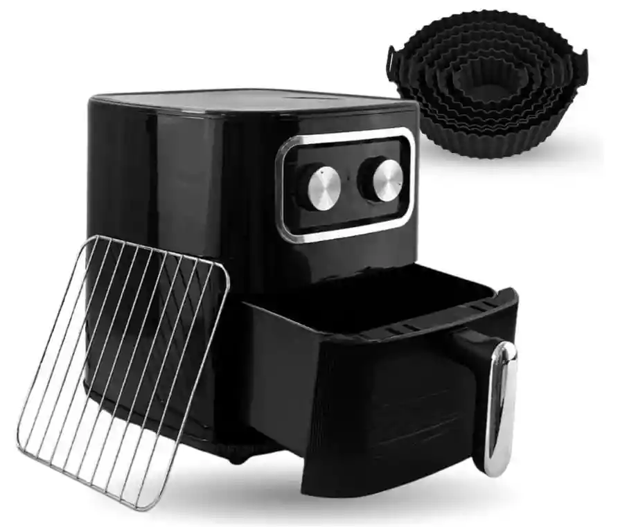¡Cocina saludable, rápido y para toda la familia con la nueva Innovo+ de 6.5 Litros! ¿Cansado de la comida grasosa pero amas el sabor de lo frito? La freidora de aire Innovo+ llegó para transformar tu cocina. Con su avanzada tecnología de circulación de aire de alta velocidad, obtendrás texturas crujientes por fuera y jugosas por dentro, utilizando hasta un 85% menos de grasa. Capacidad Familiar (6.5L): Perfecta para preparar de 4 a 6 porciones en una sola tanda. ¡Ideal para cenas familiares o reuniones! Potencia Superior (2400W): No esperes de más. Sus 2400W garantizan un calentamiento ultra rápido y una cocción uniforme en menos tiempo que un horno convencional. Ventana de Visualización: ¡No pierdas el calor abriendo la canasta! Supervisa tus alimentos en tiempo real a través de su ventana frontal. Kit de 6 Moldes de Silicona (OBSEQUIO): Somos los únicos que te equipamos por completo. Recibe 6 moldes de diferentes tamaños para repostería, carnes y más. Temperatura Ajustable: Hasta 200°C para un control total. Temporizador Integrado: Ajusta el tiempo y olvídate, la freidora te avisará cuando esté listo. Superficie Antiadherente: Limpieza fácil y rápida en segundos. 6 Modos de Cocción: Preconfigurados para Papas Fritas, Pollo, Carne, Pescado, Camarones y Pastelería. Medidas: Altura 36 cm x Ancho 34 cm (Diseño compacto y elegante). [¿QUÉ INCLUYE TU COMPRA?] Freidora de Aire Innovo+ de 6.5 Litros. Rejilla interna antiadherente. ¡BONUS! Set de 6 Moldes de Silicona de alta calidad. Manual de usuario.