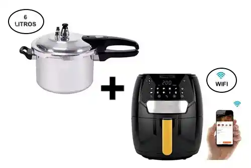 America Store te trae Freidora de Aire Wi-Fi Smart + Olla a Presion 6 Litros 1) Freidora De Aire Digital Smart Wifi 4l Extra Grande Con App Características: - App para controlar desde el teléfono (compatible con Apple y Android) - Pies antideslizantes - Temporizador de 60 minutos - Asa fría al tacto - Pantalla táctil digital - Función de precalentamiento - Protección de seguridad contra sobrecalentamiento - Tecnología innovadora de flujo de aire dinámico - Menú de 12 preajustes para una operación conveniente - Cesta para freír antiadherente desmontable y lavable en lavavajillas - Control de temperatura programable de 80 a 200 C - Apagado automático y señal de listo cuando se completa la cocción - Protector de botones para evitar que la canasta se suelte accidentalmente - Función de corte de energía de seguridad cuando se quita la base de la canasta 2) Olla Presión Pitadora Express 6 L Aluminio Válvula Seguridad Carateristicas: Tipo: Presión Marca: NIA Modelo: AN-107 Material: Aluminio super resistente Dispositivo de seguridad para apertura y cierre de la olla Válvula de seguridad Regulador de presión Sistema de bloqueo