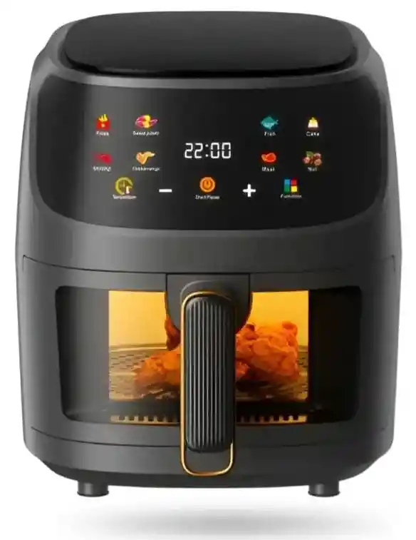 ¿Te imaginas disfrutar de pollo asado con la piel extra-crujiente o de papas doradas sin culpa? Con la Freidora de Aire X-HOME de 12 Litros, ese sueño es tu nueva realidad diaria. No solo estás comprando un electrodoméstico, estás adoptando un estilo de vida donde el sabor y la salud van de la mano. ¿Por qué es la elección de los amantes de la buena comida? El Efecto 'Gourmet View' a tu Alcance: Olvida las adivinanzas. Nuestra innovadora ventana de visualización panorámica te permite presenciar la magia. Observa cómo tus platos se doran a la perfección sin necesidad de abrir la cesta y perder calor. Es como tener un chef privado supervisando cada detalle. Potencia sin Precedentes (2.600W): Esta no es una freidora de aire común. Su motor ultra-potente de 2.600 Watts reduce el tiempo de cocción dramáticamente, perfecto para familias ocupadas. La avanzada Tecnología de Circulación de Aire de 360° asegura que cada rincón de tus alimentos quede crujiente y cocido uniformemente. Un Banquete para Todos (12L de Capacidad): Se acabó el cocinar por turnos. Su cesta extra-grande de 12 litros tiene espacio suficiente para un pollo entero o una porción masiva de papas fritas. Prepara cenas familiares completas en una sola tanda, ahorrando tiempo y energía. La Revolución Saludable: Saborea la textura frita que amas con hasta un 80% menos de grasa. Tus platos no solo serán más ligeros, sino que retendrán todos sus jugos y nutrientes. ¡Es el placer de comer bien, reinventado! Tu Asistente Digital Táctil: Con su panel táctil intuitivo y 8 programas preestablecidos, cocinar es tan fácil como un toque. Desde papas fritas y carnes hasta pescados e incluso postres, la freidora ajusta la temperatura y el tiempo automáticamente para resultados perfectos. Más que una Freidora, es tu Aliado en la Cocina. Su diseño moderno en negro piano y detalles en bronce eleva la estética de cualquier cocina. Además, es tan versátil que puedes usarla para asar verduras, tostar frutos secos, deshidratar frutas o simplemente recalentar pizza y dejarla como recién hecha.
