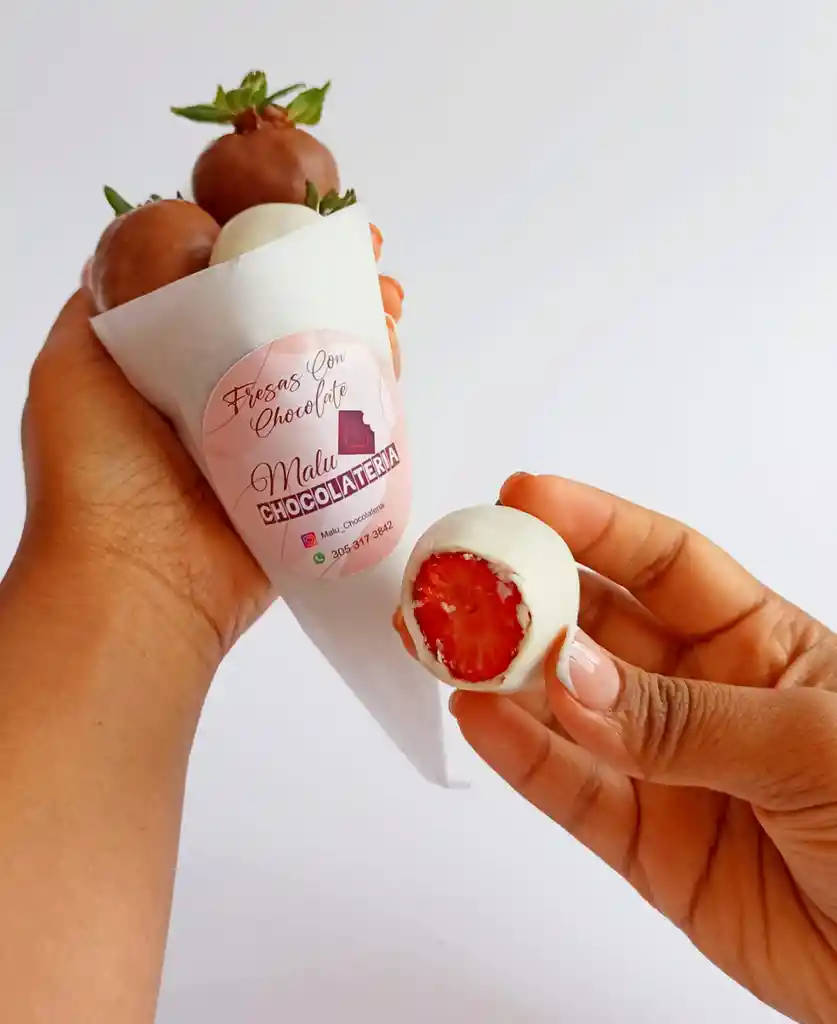 FRESAS BAÑADAS CON COBERTURA DE CHOCOLATE BLANCO Y LECHE