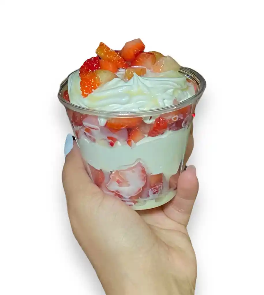 Fresas con crema pequeña con lecherita.