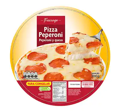 Esta pizza viene congelada y esta lista para hornear, calentar y servir. Contiene rodajas de peperoni y queso fresco. Sabe muy bien en cualquier momento del día y la puedes acompañar de tu refresco favorito. packing: Caja