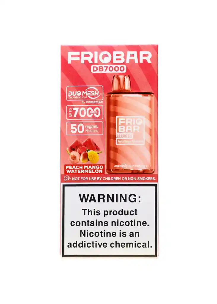 Cargado con una bocanada de 7000 aproximadamente, el Friobar DB7000 está disponible en una serie de deliciosas líneas de sabor que sacuden a todos los paladares de manera ideal. Equipado con una batería recargable de 650 mAh que puede ofrecer múltiples sesiones de vapeo con una sola carga. Prohibida la venta a menores de edad. Producto nocivo para la salud que contiene nicotina, sustancia altamente adictiva. Antes de consumir consulte las indicaciones y contraindicaciones de uso
