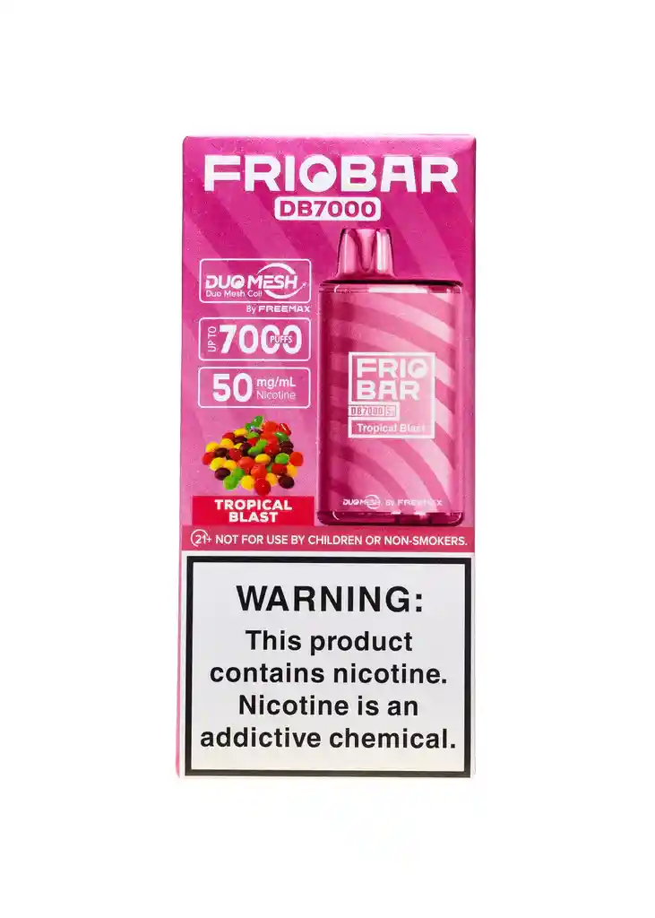 Cargado con una bocanada de 7000 aproximadamente, el Friobar DB7000 está disponible en una serie de deliciosas líneas de sabor que sacuden a todos los paladares de manera ideal. Equipado con una batería recargable de 650 mAh que puede ofrecer múltiples sesiones de vapeo con una sola carga. Prohibida la venta a menores de edad. Producto nocivo para la salud que contiene nicotina, sustancia altamente adictiva. Antes de consumir consulte las indicaciones y contraindicaciones de uso