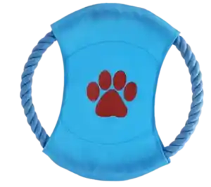 Frisbee Juguete Disco En Cuerda Y Tela Azul Ideal para entrenar los reflejos y velocidad de tu perro. Su parte central es en tela y su exterior con cuerda en algodón. La cuerda en algodón permite que los dientes de tu perro se mantengan limpios.
