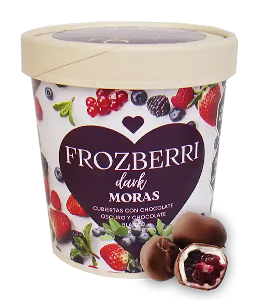 Deliciosas moras congeladas cubiertas con chocolate semiamargo (oscuro) y chocolate blanco! Combina la frescura natural de las frutas con la suavidad y el sabor exquisito del chocolate.
