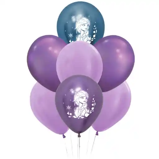 "Bouquet de 7 globos en helio. Incluye: - 3 globos lila en látex - 2 globos morado cromado en látex - 1 globo estampado azul cromado en látex - 1 globo estampado morado cromado en látex - Pesa sencilla Todos los globos contienen helio y gel de larga duración (3 días de duración). "