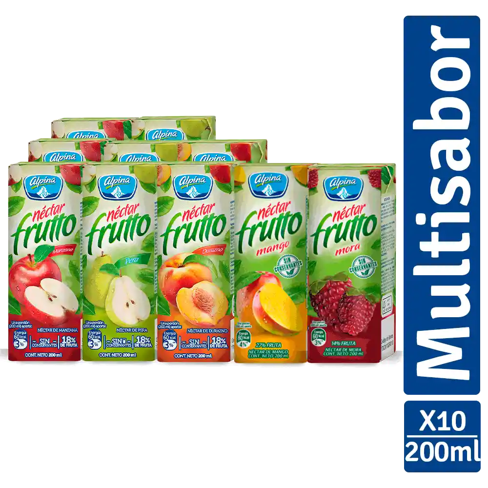 Es un néctar que contiene 18% de jugo fruta y está endulzado con sacarosa edulcorantes no calóricos y fructuosa el azúcar de las frutas. Además no contiene conservantes y aporta tan solo 70 calorías por porción. Presentaciones ideales para niños y jóvenes. Caja con 10 unidades de 200 ml c/u. Packing: Caja