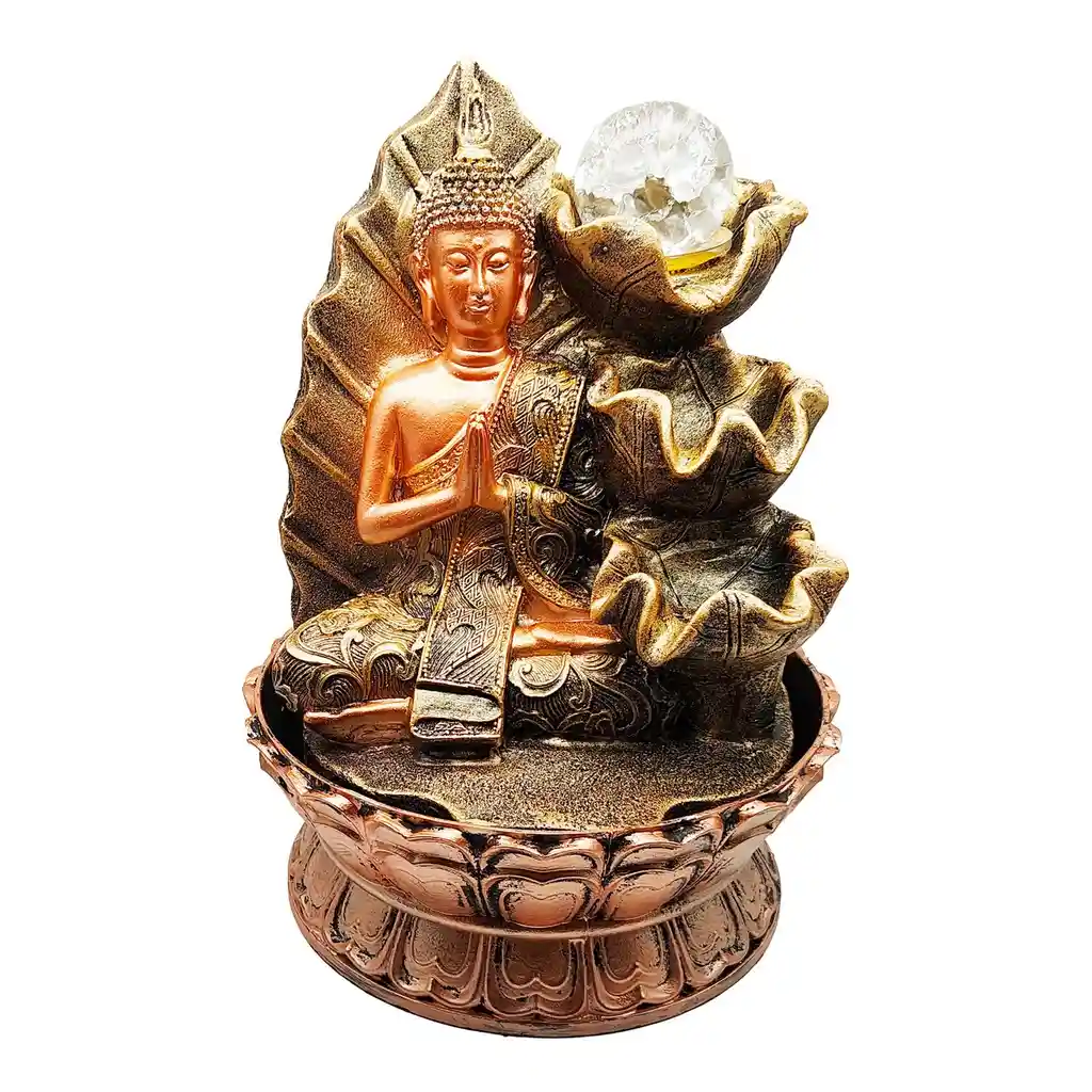 La fuente de agua con figura indu es una pieza de arte y funcionalidad. Con su bomba de agua silenciosa y regulación de velocidad, crea un ambiente relajante. La esfera de cristal esmerilada ilumina la figura indu tallada, añadiendo un toque mágico. Ideal para cualquier espacio que busque elegancia y serenidad. Acompañado de la figura de Buda sentada o meditando, esta postura significaría un tipo de conciencia mayor. En este estado del ser, el materialismo ya no importa. Ficha Técnica: Dimensiones: 27 cm x 20 cm x 20 cm Material: Poliresina Fuente : Enchufe a Corriente eléctrica Lugares Adecuados: Casa, Local , Oficina u otros ** _Para defectos de fábrica o retractos: \_Por favor revise el producto apenas lo reciba y antes de usarlo. No aplican ley de retracto o defectos de fábrica luego de usar el producto. Se manejan máximo 5 días para reportar defectos de fábrica (por ejemplo, producto funciona mal, piezas faltantes, rotas, etc). Para hacer efectiva la devolución el producto debe devolverse con el empaque original, el cual debe estar en buen estado, incluir todos los documentos y las partes completas y sin daños.