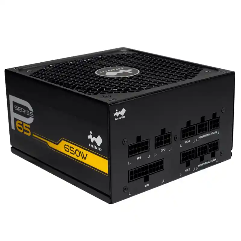 Especificaciones: Modelo: P65 Potencia Total: 650W Administración de cables: Full Modular PFC: Factor de potencia activo ( >0.95) Eficiencia: 80 PLUS Gold (Up to 90%) MTBF (Horas): > 100,000 hrs. Entrada de CA: 100-240 Vca,10 A, 50-60 Hz Ventilador: Ventilador FDB de 135 mm Intervalo de temperaturas de funcionamiento (°C): 0~40 °C Proteccion total: OCP/ OVP/ UVP/ SCP/ OTP/ OPP Certificaciones de seguridad: cTUVus/ TUV/ CB/ BSMI/ CE/ FCC/ EAC/ CCC/ RCM Dimensiones (LA x AN x FO): 160 x 150 x 86 mm Peso neto: 2.35 kg Conectores: 1x 20+4 Pin Motherboard 1x 8 (4+4) Pin CPU 4x 8 (6+2) Pin PCI-E 4x 4 Pin Peripheral 9x SATA (90 Degree) 1x Floppy Garantía: 60 Meses