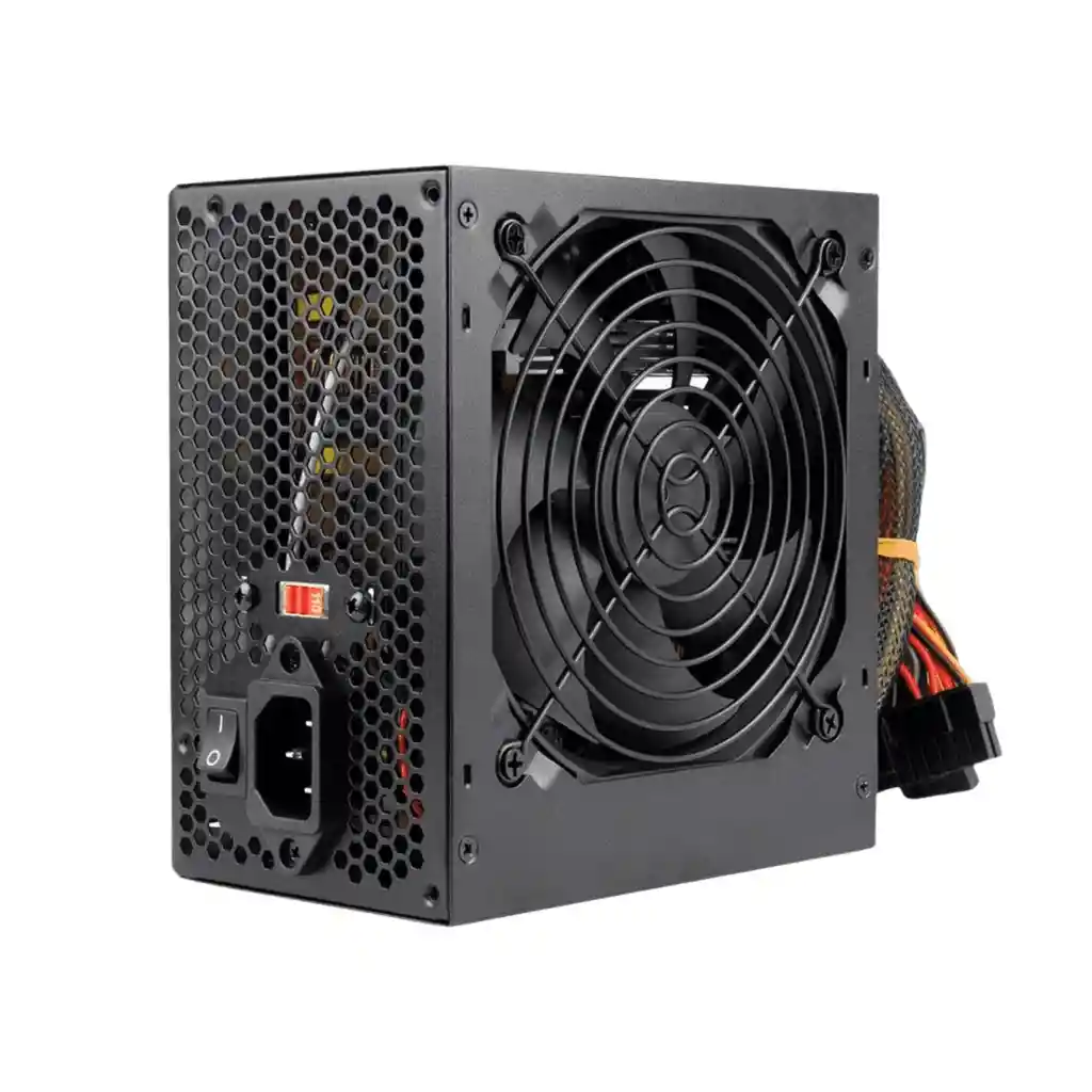POTENCIA FIABLE DE 500W Esta fuente de poder proporciona 500W reales, asegurando un rendimiento óptimo y constante para tu PC. MULTIPLE CONECTIVIDAD Equipado con un conector de 24 pines, 2 conectores IDE, 4 conectores SATA, y un conector PCIe de 6+2 pines para máxima compatibilidad con diversos componentes. DISIPADOR DE CALOR EFICAZ Incorpora un ventilador silencioso de 12 cm y un sistema de disipación de calor, manteniendo tu sistema fresco incluso bajo carga intensa. CABLERÍA DE CALIDAD Cables de 50 cm recubiertos en malla negra, garantizando durabilidad y un aspecto ordenado dentro de tu gabinete. INTERRUPTORES PRÁCTICOS Cuenta con interruptores ON/OFF y para seleccionar entre 110V y 220V, proporcionando flexibilidad y seguridad en la conexión de tu equipo.