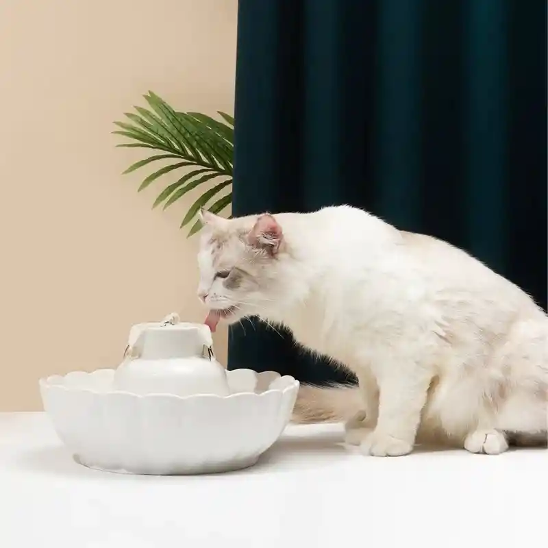 Material de cerámica saludableLa fuente de agua Tritone Cat de L está hecha de material de cerámica natural y ecológico después del dibujo manual de embriones y horno de alta temperatura moldeado suave de una sola pieza es elegante y muy seguro para tus mascotas Además es fácil de limpiar mucho mejor que la fuente de plásticoSistema de triple filtración la espuma prefiltro que rodea la bomba puede evitar que los pelos y desechos entren en la bomba y el tanque los residuos de malla de algodón de alta densidad el carbón activado y el carbón ayudan a eliminar el cloro los malos olores y sabores mantienen el agua limpia fresca y saludable para tus mascotas Sugerimos reemplazar el filtro cada semanasBomba silenciosaNuestra fuente de porcelana para gatos está equipada con bomba certificada CE IP resistente al agua funciona con CC V W de bajo consumo solo puedes escuchar el goteo de agua por lo que no molestará tu sueño en absoluto Mantén suficiente nivel de agua por encima de la bomba para evitar que la bomba se seque y se quemeFlujo de agua de Fuente de bebida para mascotas de onzas litros puede proporcionar suficiente agua para que una mascota beba semanas o más este dispensador de agua para gatos está equipado con un flujo de agua de el flujo de agua dinámico puede atraer a las mascotas a beber agua estructura de almacenamiento de agua abierta tus mascotas todavía pueden tener agua después de apagarse